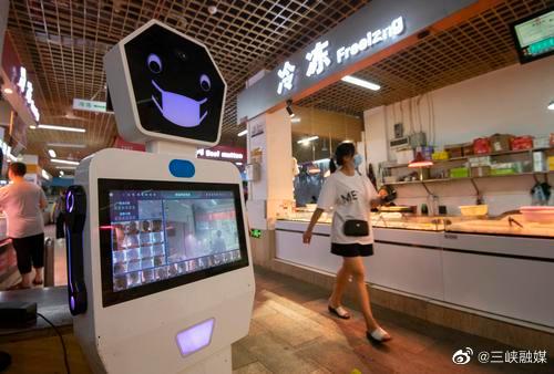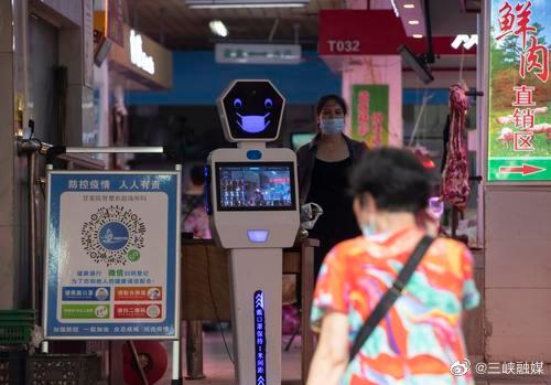 [万州事儿] 防疫机器人提醒市民佩戴口罩并监测市民体温。 |